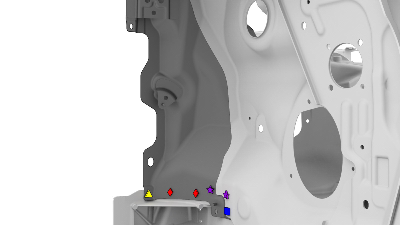 NotaUna X roja indica una ubicación en la que no se está sustituyendo una fijación instalada de fábrica.