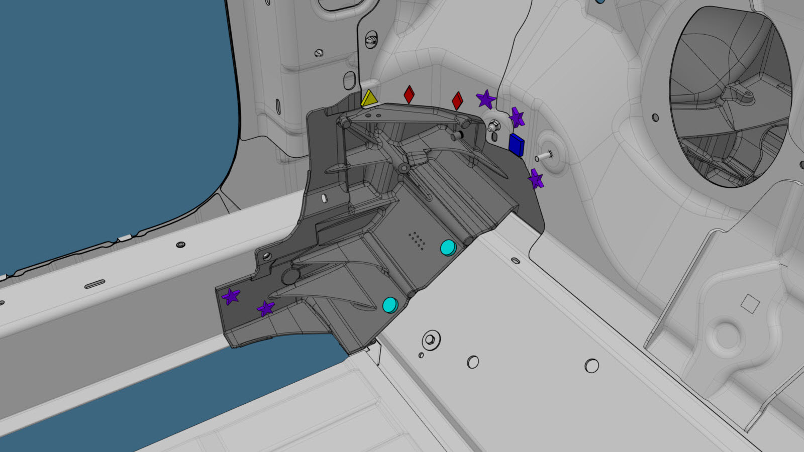 הערהX אדום מציין מיקום בו מהדק בהתקנת מפעל לא מוחלף.או מסמרות מבניות עם חוזק גבוה, 6.5 מ"מ