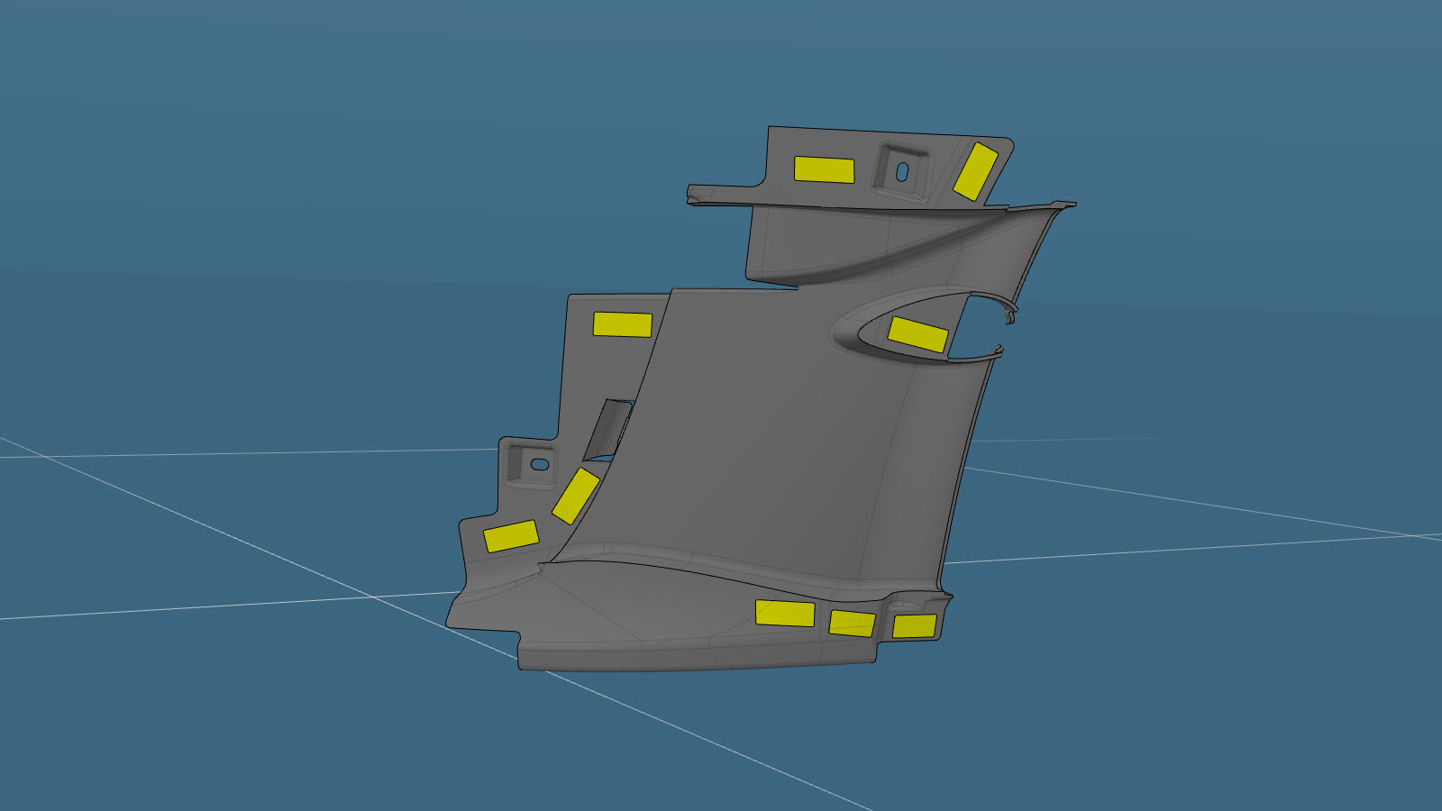 - Utilizzando le istruzioni del produttore dell'adesivo non strutturale approvato, preparare le aree incollate del condotto e della traversa (evidenziate in giallo):