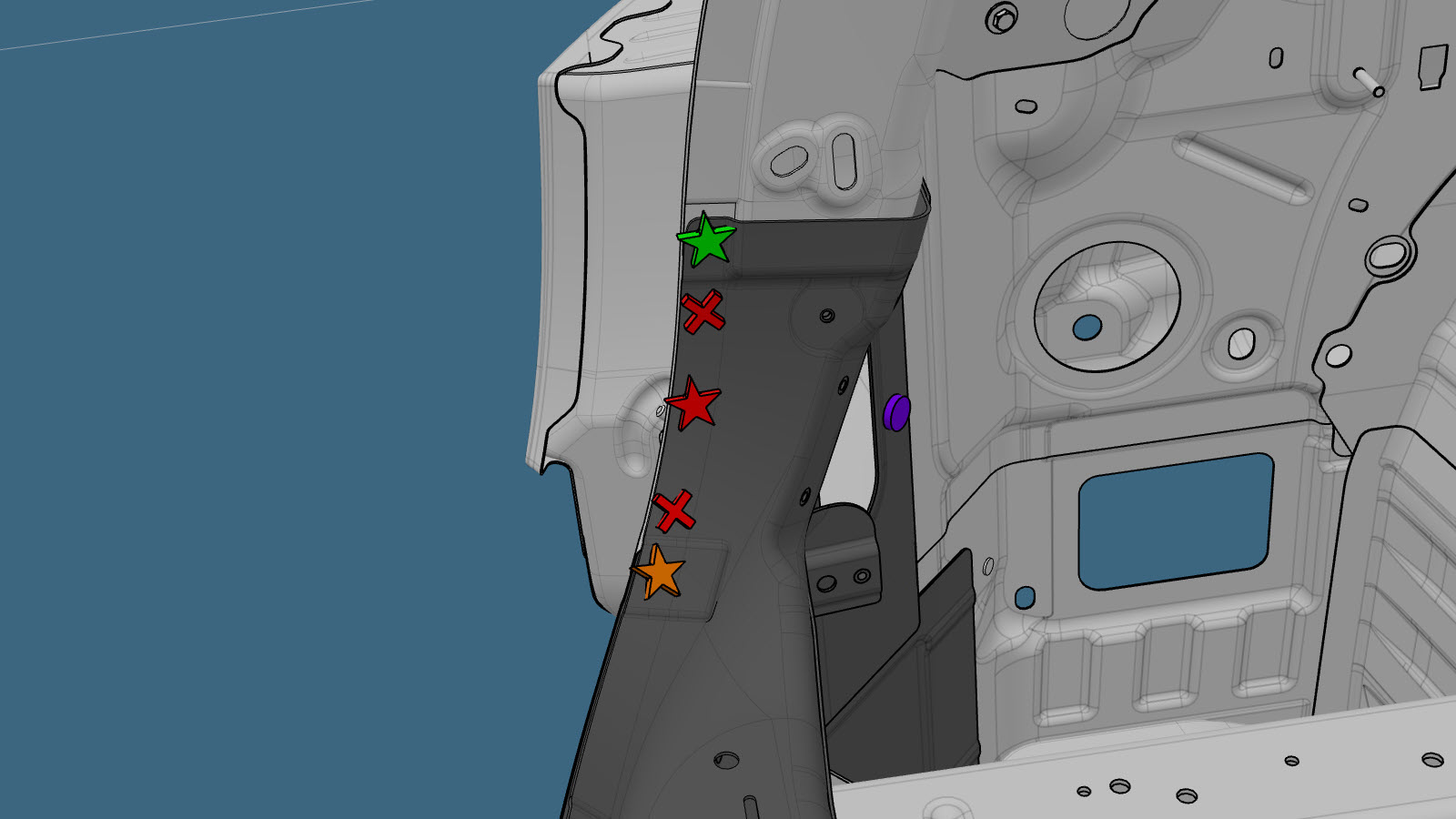 NotaUna X rossa indica la posizione in cui un dispositivo di fissaggio installato in fabbrica non viene sostituito.