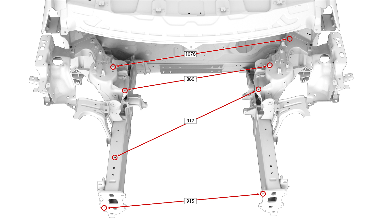 Le misurazioni delle dimensioni vengono utilizzate per agevolare la diagnosi dei danni al veicolo e determinare se potrebbero essere necessarie riparazioni strutturali per riportare il veicolo alle specifiche.