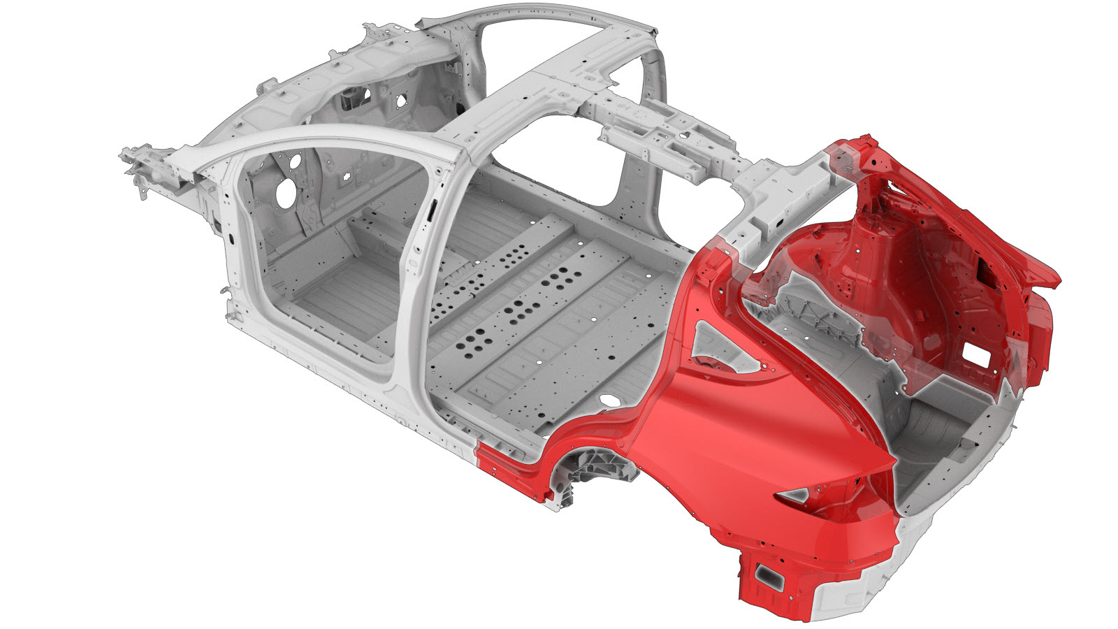 2022년 2월 14일까지 제조된 차량 전용: 쿼터 외측 패널과 쿼터 외측 하단 패널(빨간색으로 표시) 사이의 틈을 우레탄으로 채웁니다.