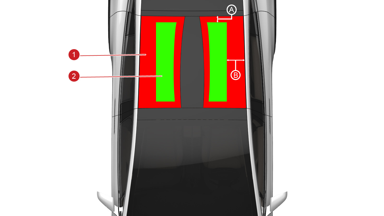 • B:天窗玻璃外侧边缘 263 毫米范围内。