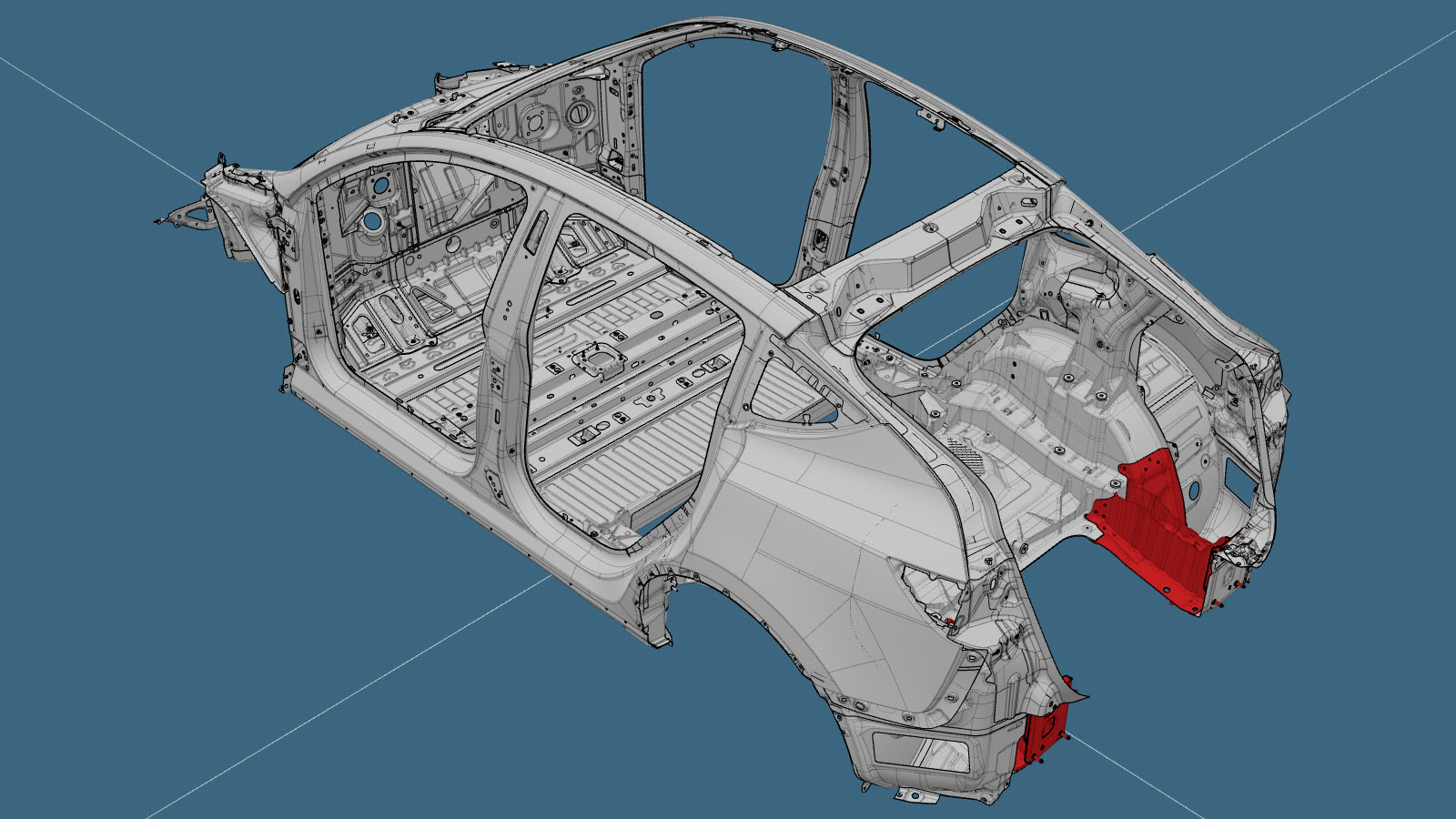 - Je nach Beschädigung dieses Bauteils kann eine Reparatur des Bauteils möglich sein. Siehe Reparaturrichtlinien für Guss-Bodengruppe hinten (1-teilig) für weitere Informationen.