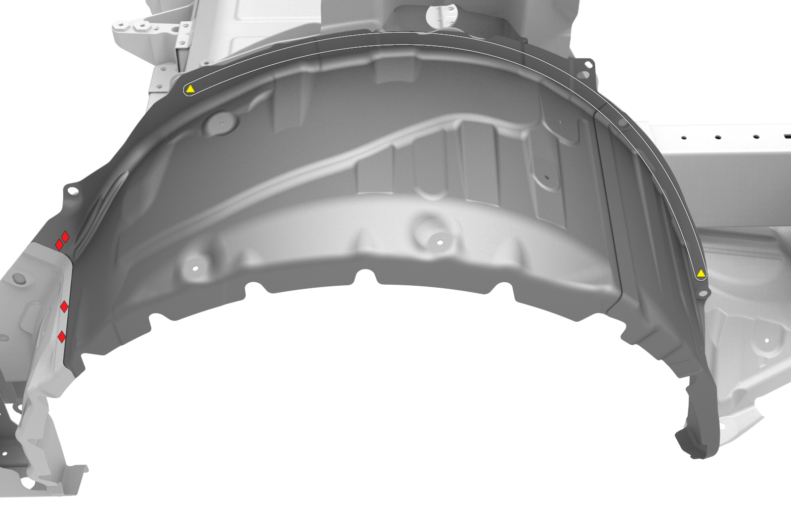 - להחלפה בתיקון אחד כרכיב שלם יחיד, באמצעות חלק שירות ASSEMNLY,WHEEL HOUSE OUTER,SVC E-COATED (Wheelhouse Outer) וההוראות במקטע תהליך התיקון של מסמך זה.