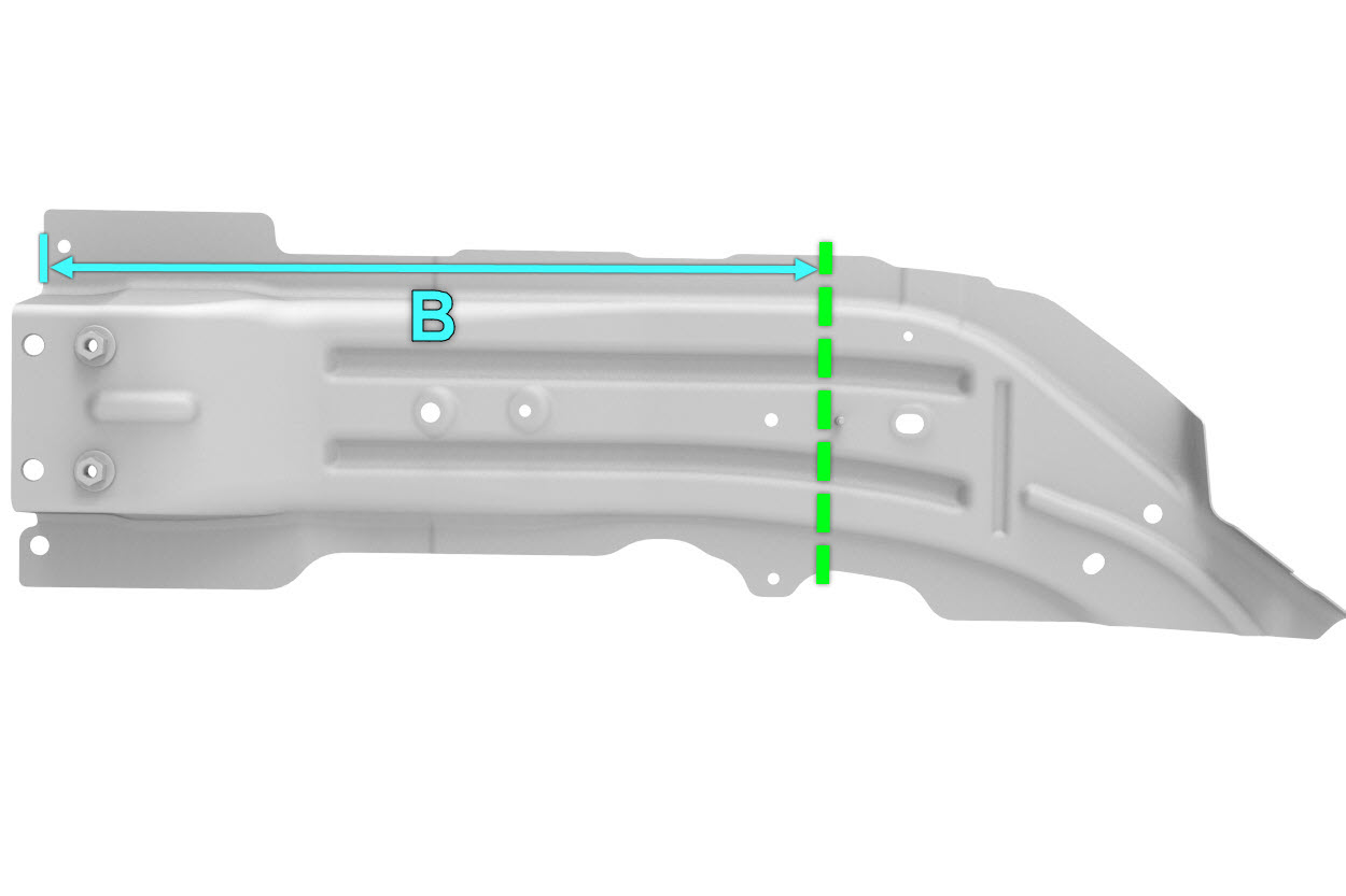 חתכו את אחת ממסילות המסגרת הקדמית החיצונית החדשות כפי שמצוין להלן כדי יצירת לוחית חיזוק.