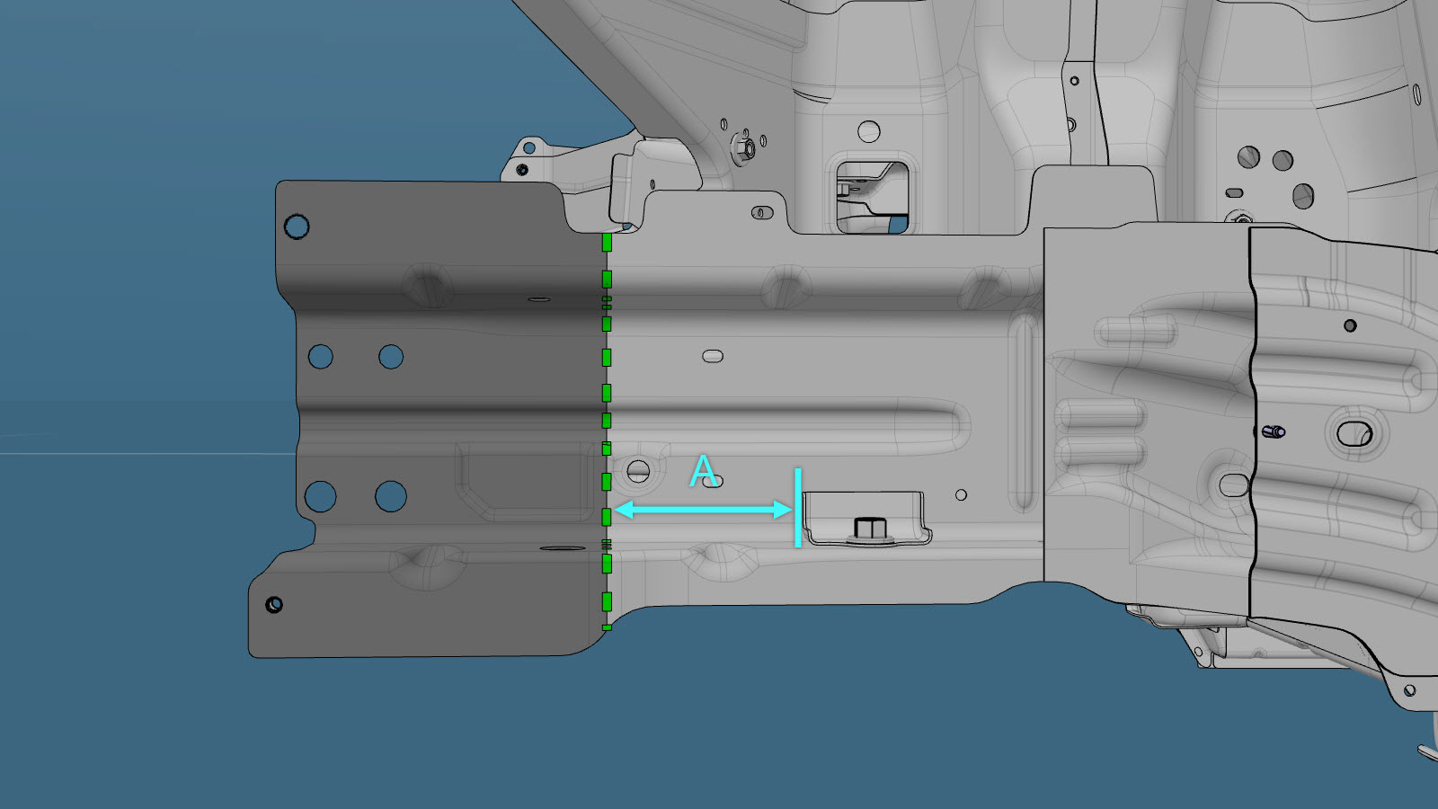 Rimuovere il rinforzo interno guida telaio anteriore (sezione).