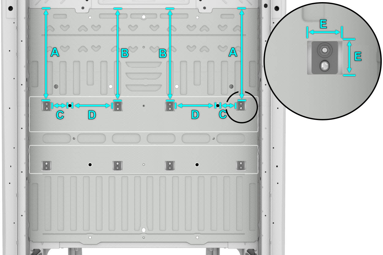 참고교체하지 않는 마운트 아래 패널은 절단하지 마십시오.참고플로어 패널을 절단할 때 바닥 크로스멤버를 손상시키지 마십시오.참고아래 첫 번째 이미지는 전면 시트 전면 마운트 보강재입니다. 두 번째 이미지는 전면 시트 후면 마운트 보강재입니다.전면 마운트:- A = 564mm