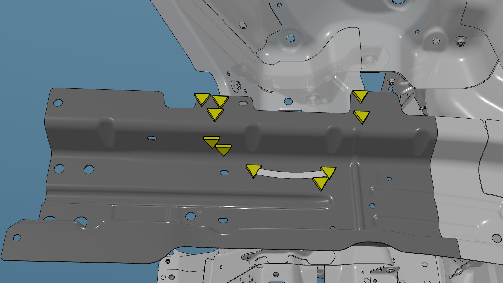 Instale o apoio da subestrutura dianteira (interior).