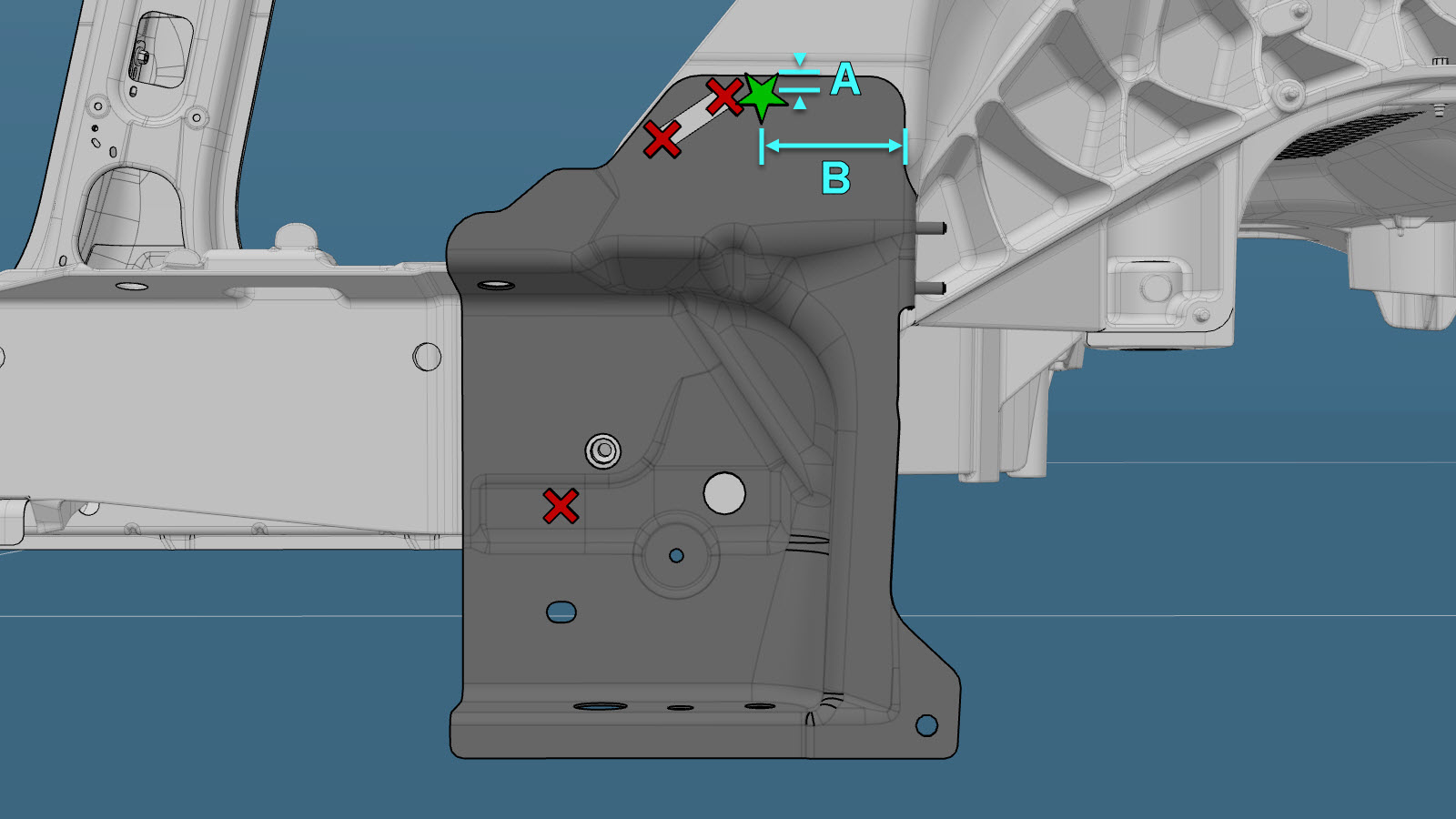 NotaUm X vermelho indica um local onde um fixador instalado de fábrica não será substituído.