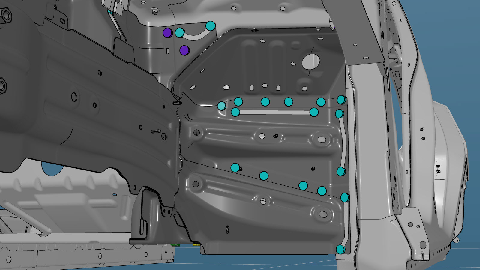 ou rebites embutidos, 4,8 mm, curtosNotaO local de instalação de alguns rebites é desviado de alguns locais da soldadura por pontos de fábrica.ou rebites embutidos, 4,8 mm, compridos