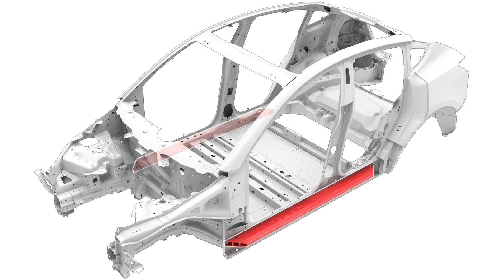 If the component is damaged in the area shown in red, the component should be replaced. If necessary, contact Tesla Collision Repair for assistance.