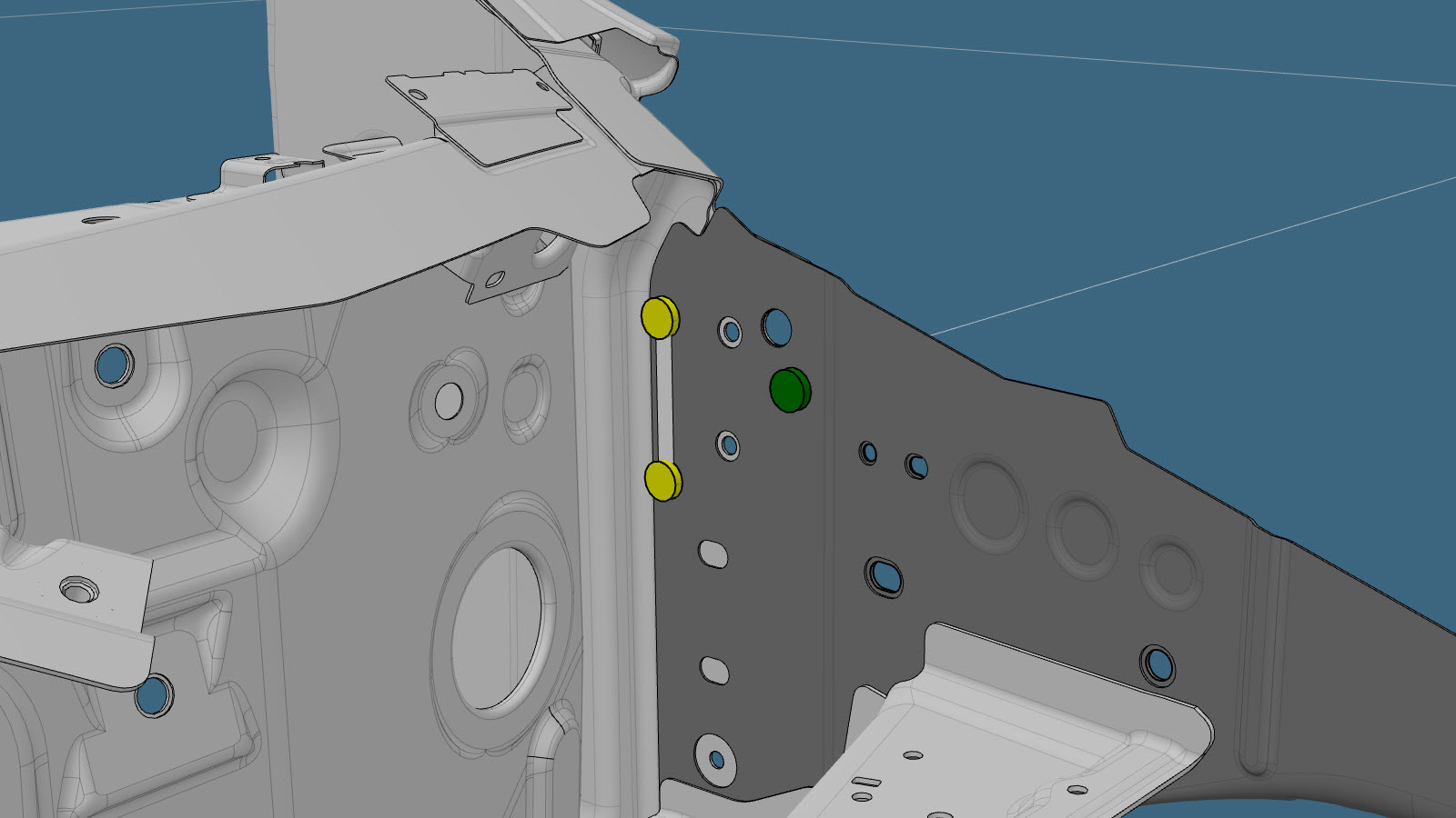 NoteThe factory spot weld circled in yellow is not present in all vehicles. -