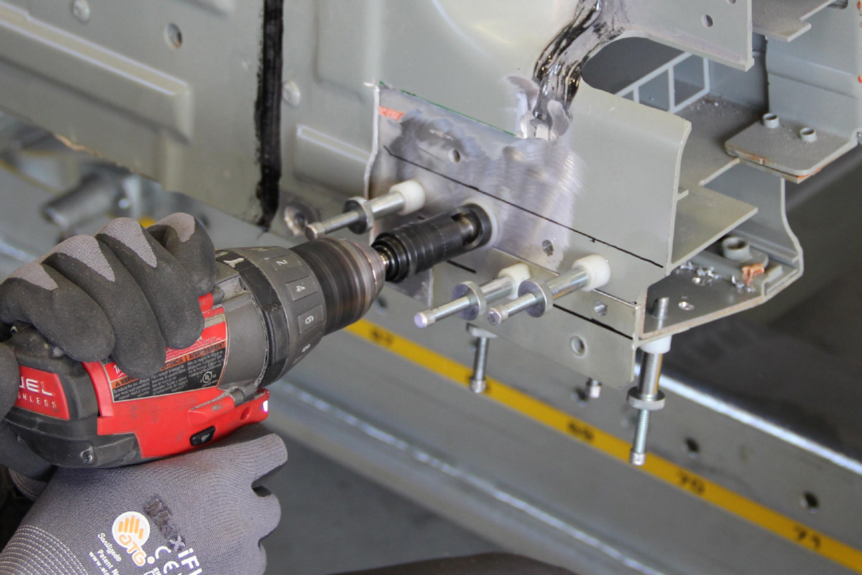 adjusted countersink cage assembly to countersink the holes in the repair