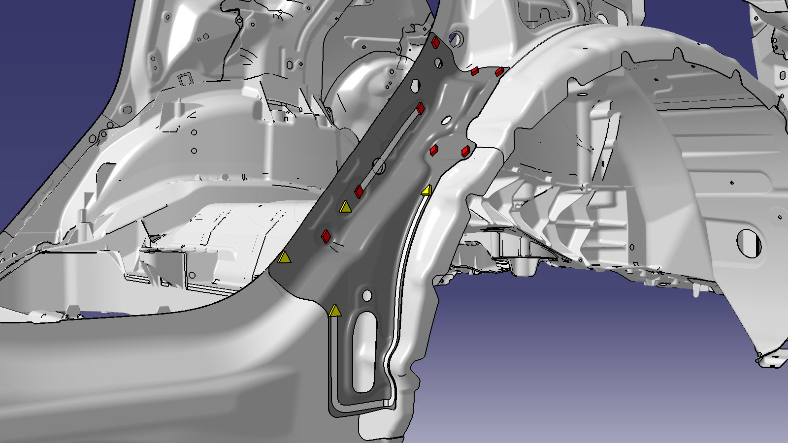 Montieren Sie den Teil von Karosserieseite außen, der entfernt wurde, um das zu reparierende Bauteil freizulegen.