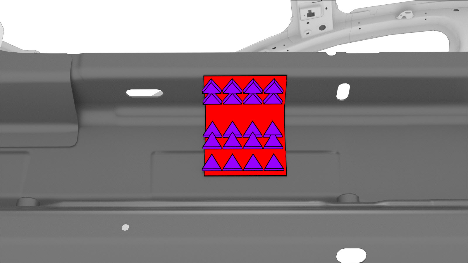 Línea de corte del pilar de la bisagra con el larguero Línea de corte del larguero con el pilar B Placas de refuerzo del pilar de la bisagra con el larguero