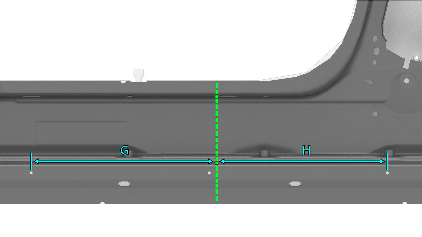 Sección del pilar B Línea de corte Línea/punto de referencia