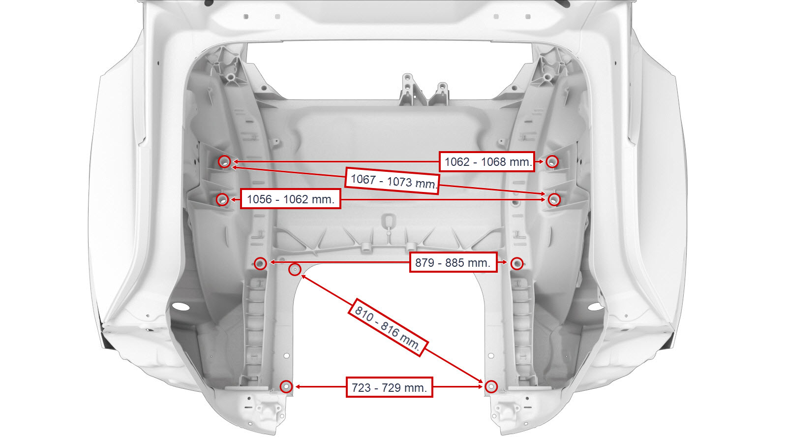 Las mediciones dimensionales sirven como ayuda para diagnosticar daños en el vehículo y determinar si es posible realizar reparaciones estructurales para devolver el vehículo a su estado original.