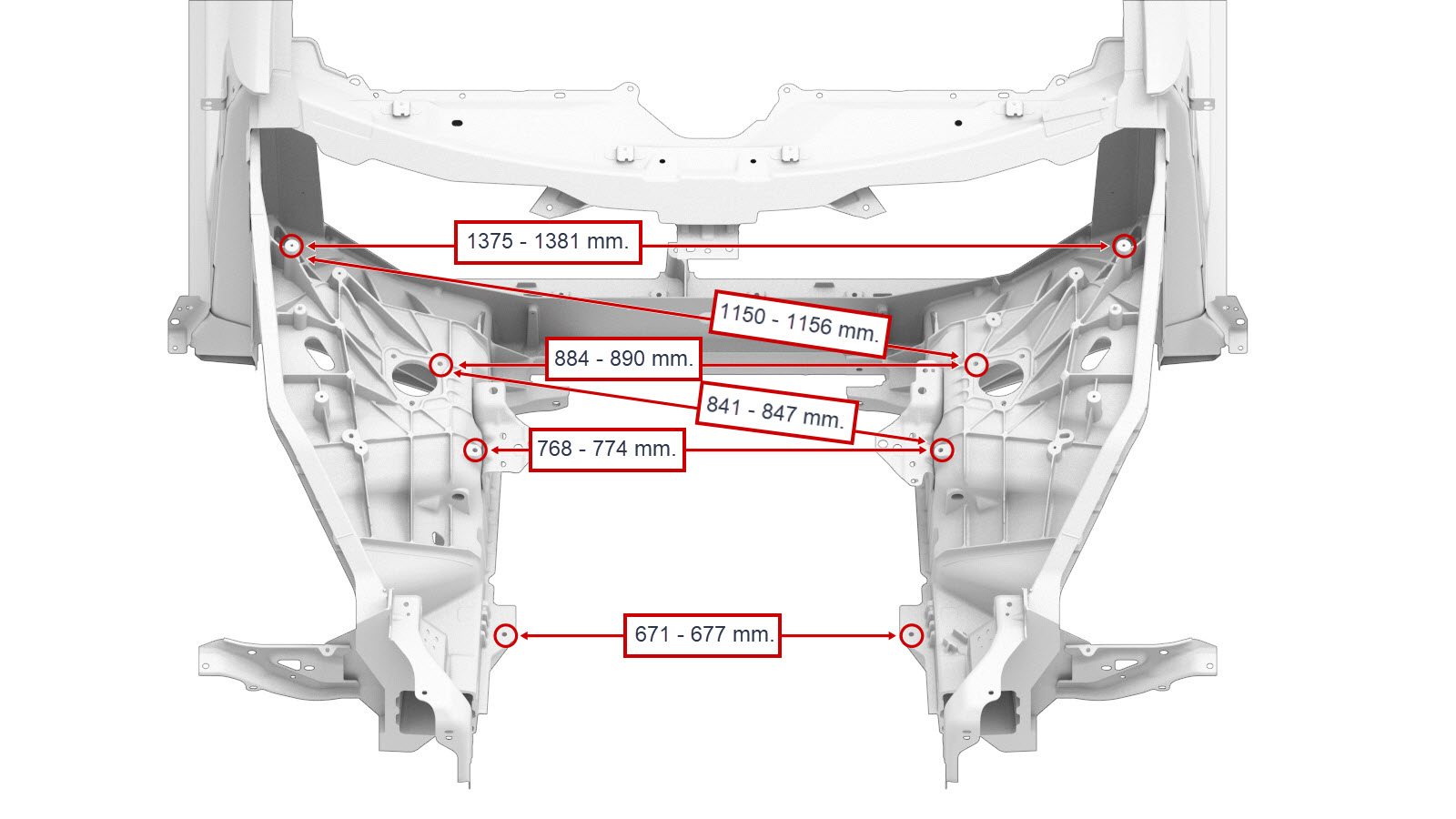 Les mesures dimensionnelles sont utilisées comme outil pour diagnostiquer les dommages au véhicule et établir si des réparations structurelles sont nécessaires pour que le véhicule retrouve les caractéristiques techniques appropriées.