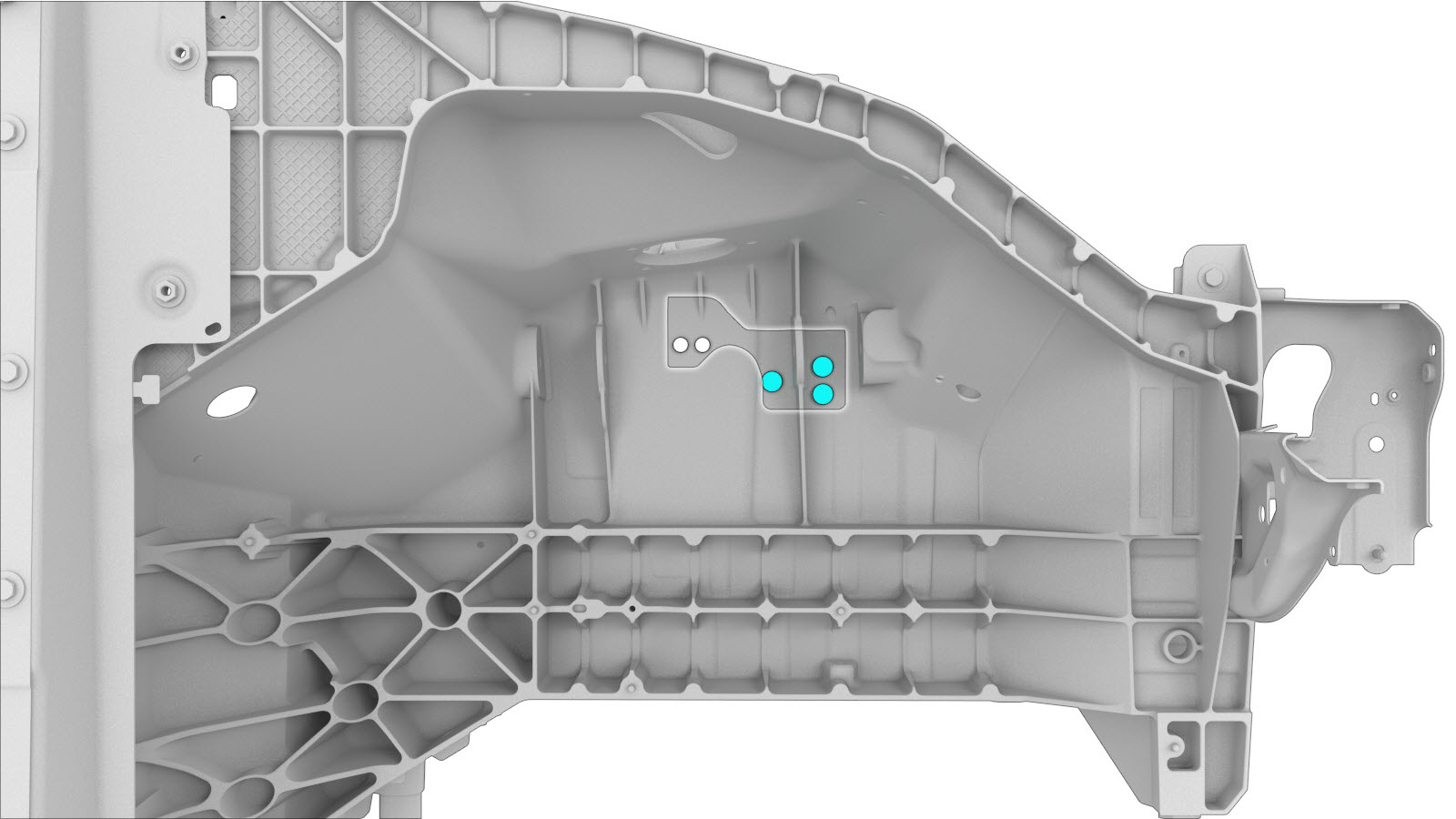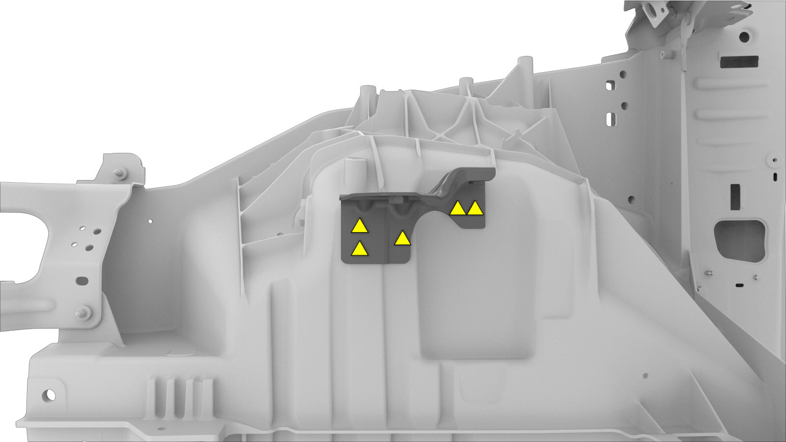 - עבור כלי רכב שנבנו לאחר 7 בפברואר 2023, השתמשו בהליך סוגר גשר Shock Tower (ימני) (כלי רכב שנבנו לאחר 7 בפברואר 2023).