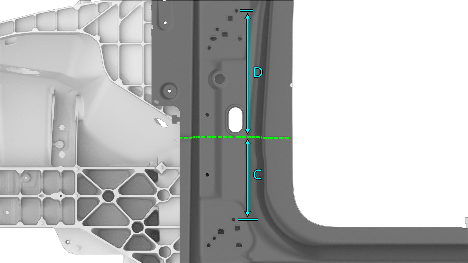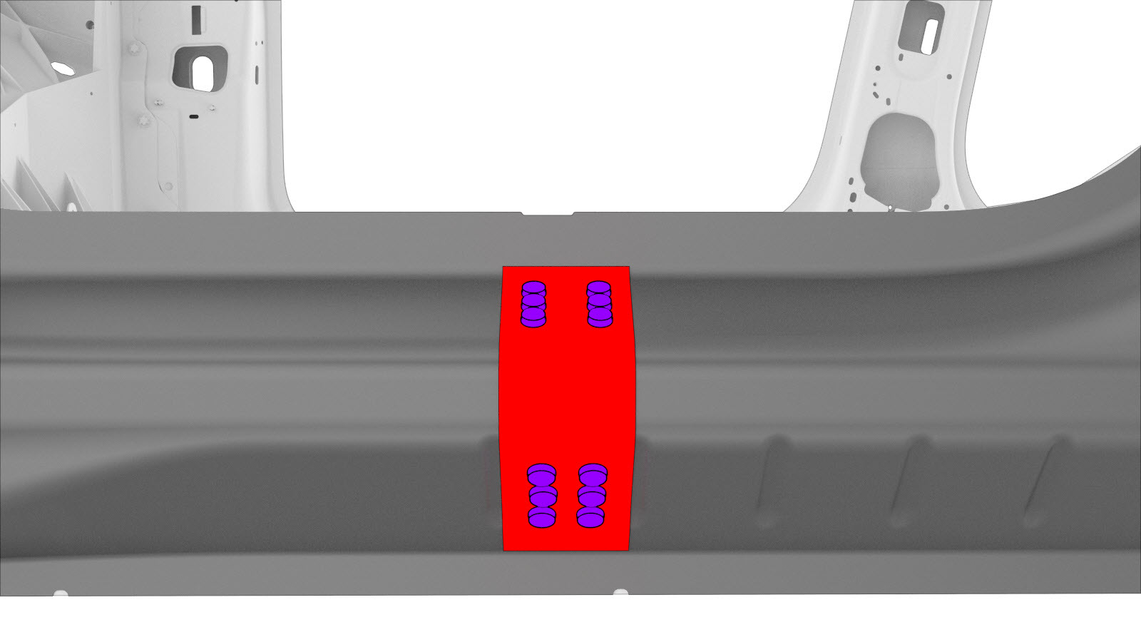 קו חיתוך קורת B–Pillar תחתונה לסף אחורי לוחית חיזוק קורת B–Pillar תחתונה לסף אחורי |