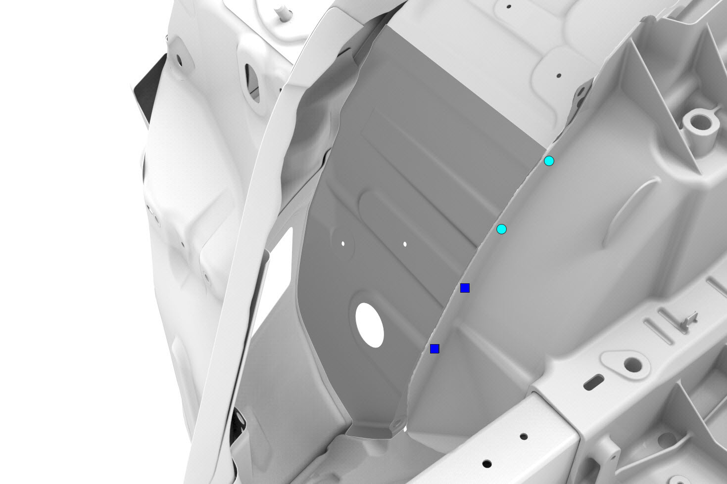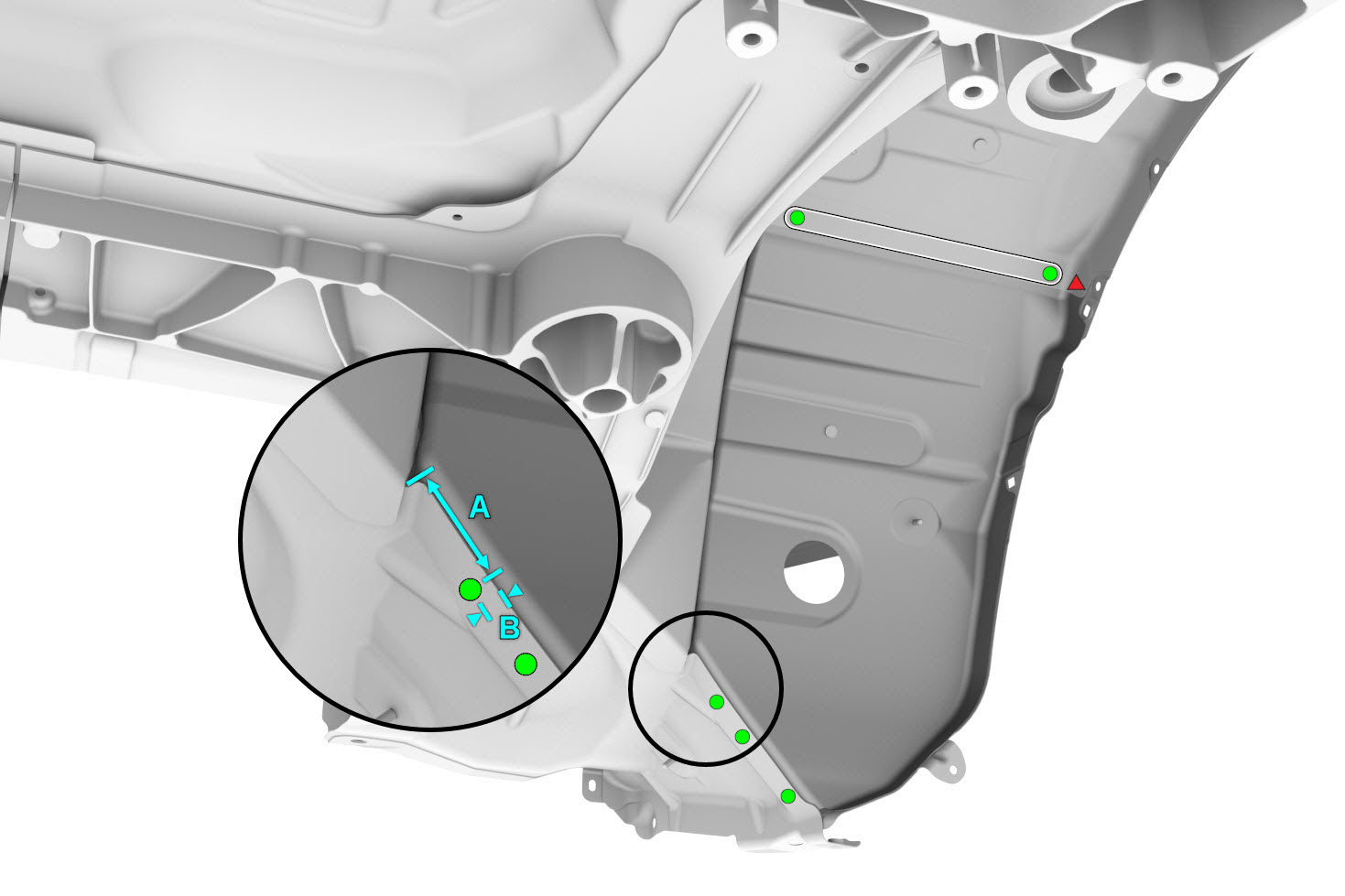 הערהעבור ריתוך מגופה זה, קדחו חור 6 מ"מ במיקום המצוין. - יש לשים דבק מבני על משטחי הצימוד של הרכב והרכיב החדש או הרכיבים החדשים.
