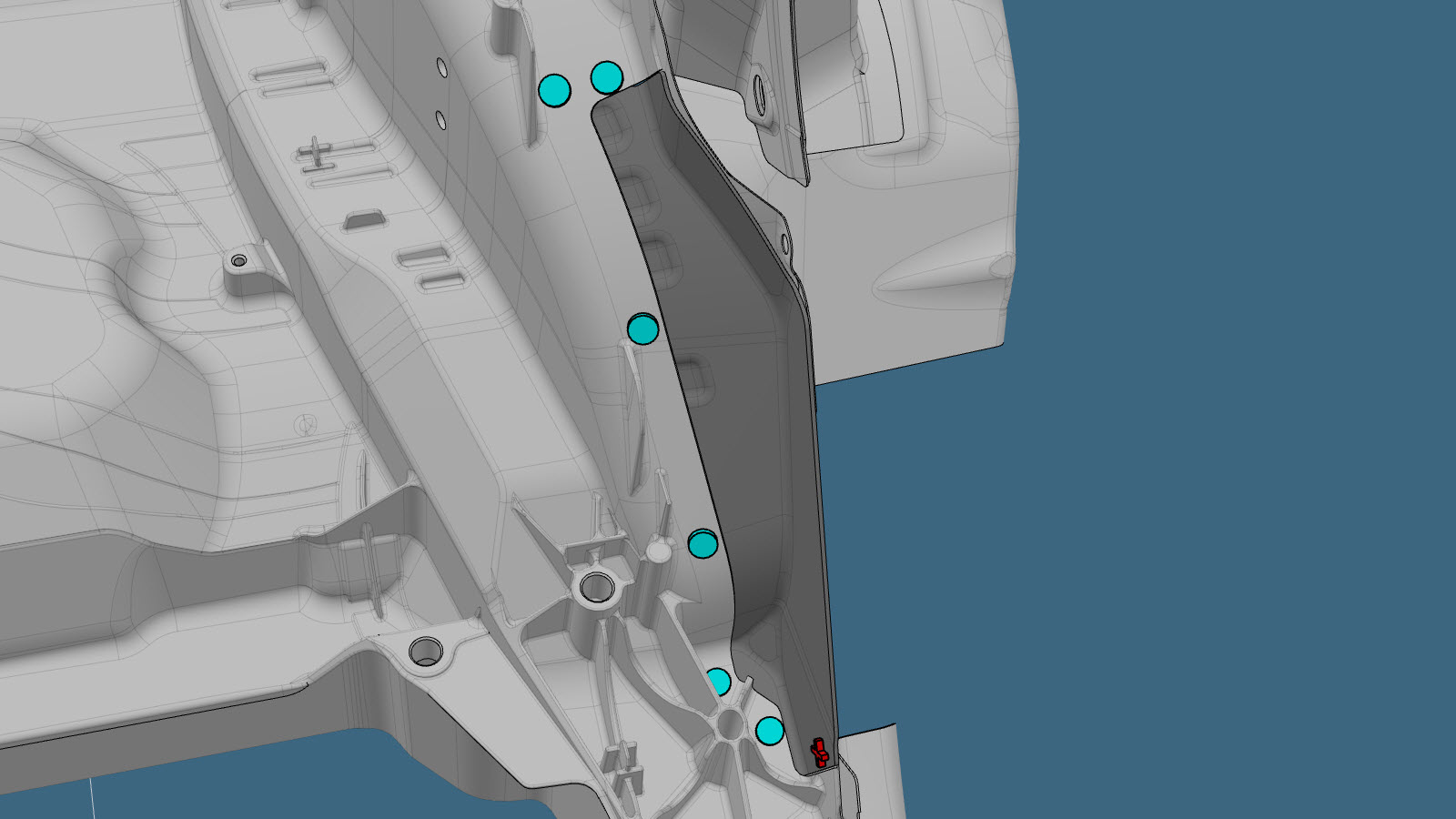 注从轮罩底部安装维修零件。注红色 X 表示此处工厂安装的紧固件未进行更换。