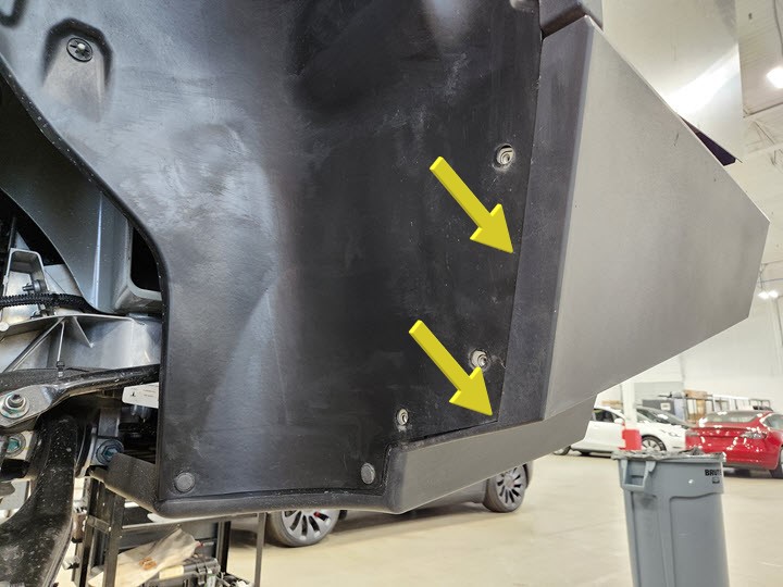 If the mud flap was secured with clips instead of bolts, install U-nuts (x3) onto the