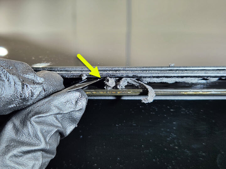 NotaUse 3M adhesive remover.NotaDo not remove net pads, Use adhesive remover and blade to roll adhesive, Make sure to wear proper PPE for cutting, Rubber gloves used in pictures for demonstration purposes only