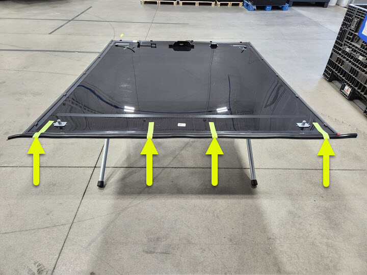 Fije la herramienta de corte Spider en la parte interior del conjunto del cristal del techo fijo.