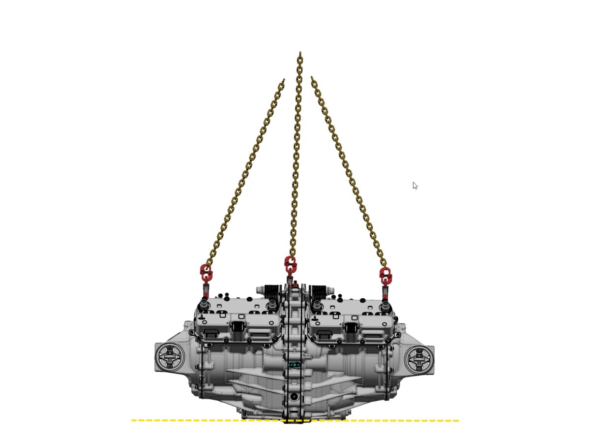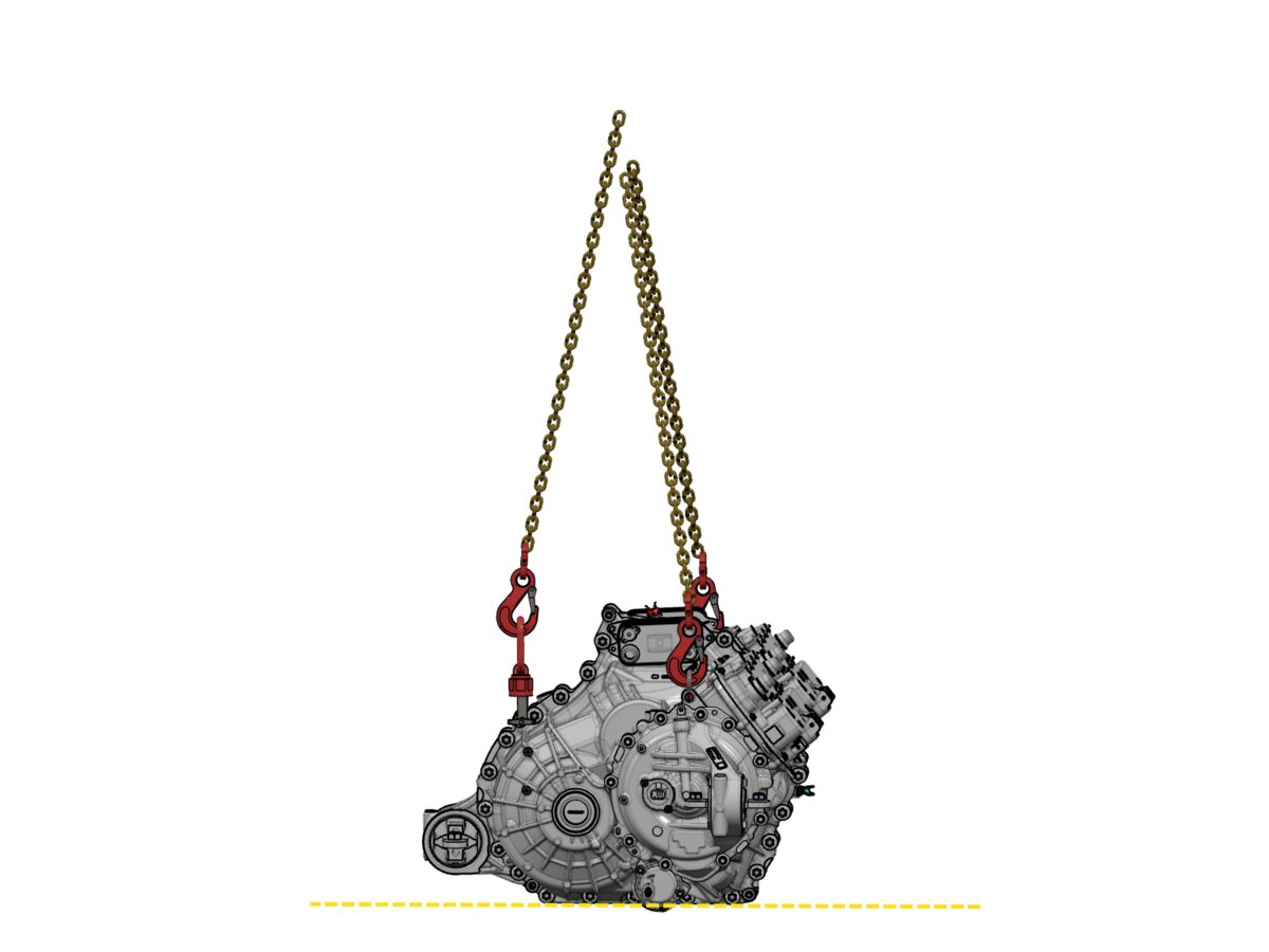 Suba el elevador del tren de transmisión hasta el bastidor auxiliar trasero.