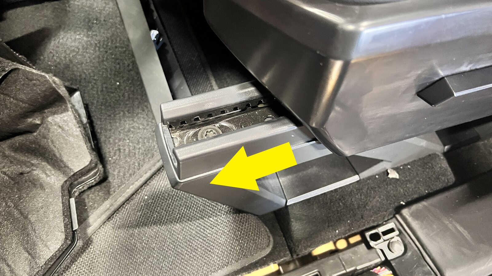 Faites glisser le couvercle du rail de siège vers l’avant pour le libérer du rail de siège, puis retirez le couvercle du rail du siège.