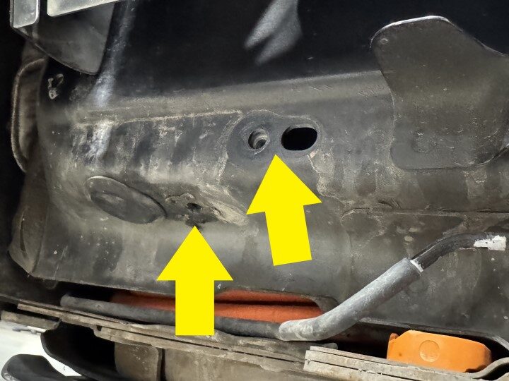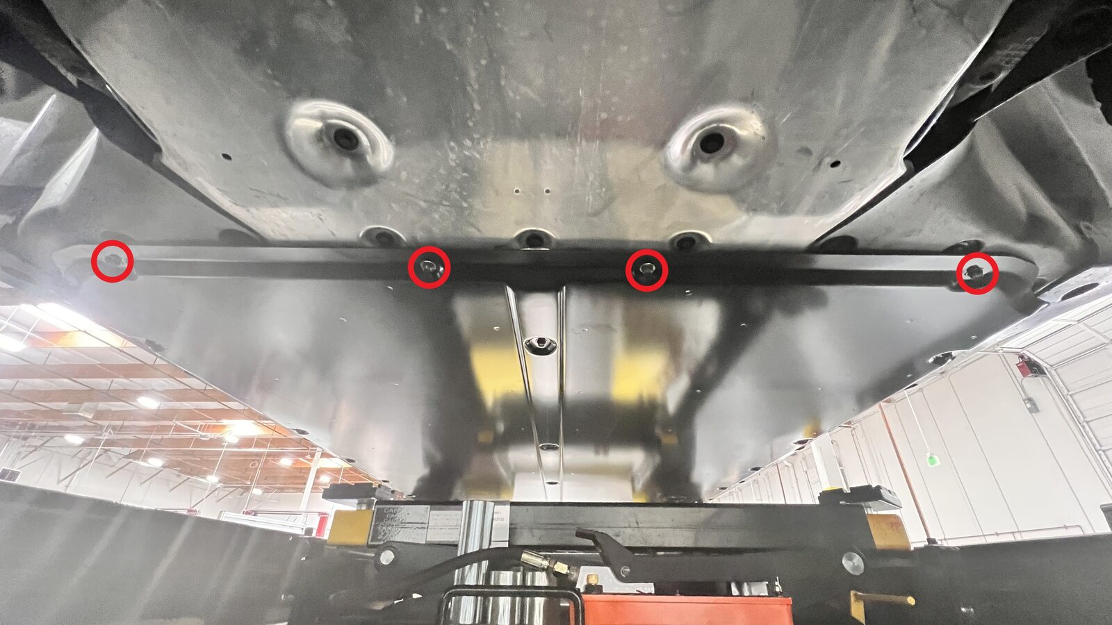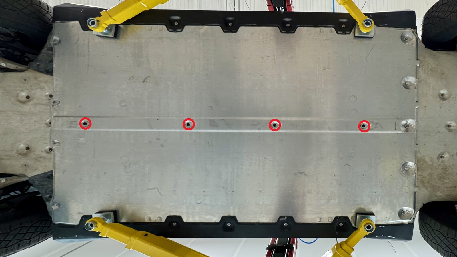 Bolts (x4) that attach the front side of the HV battery off road armor assembly to the HV battery. |