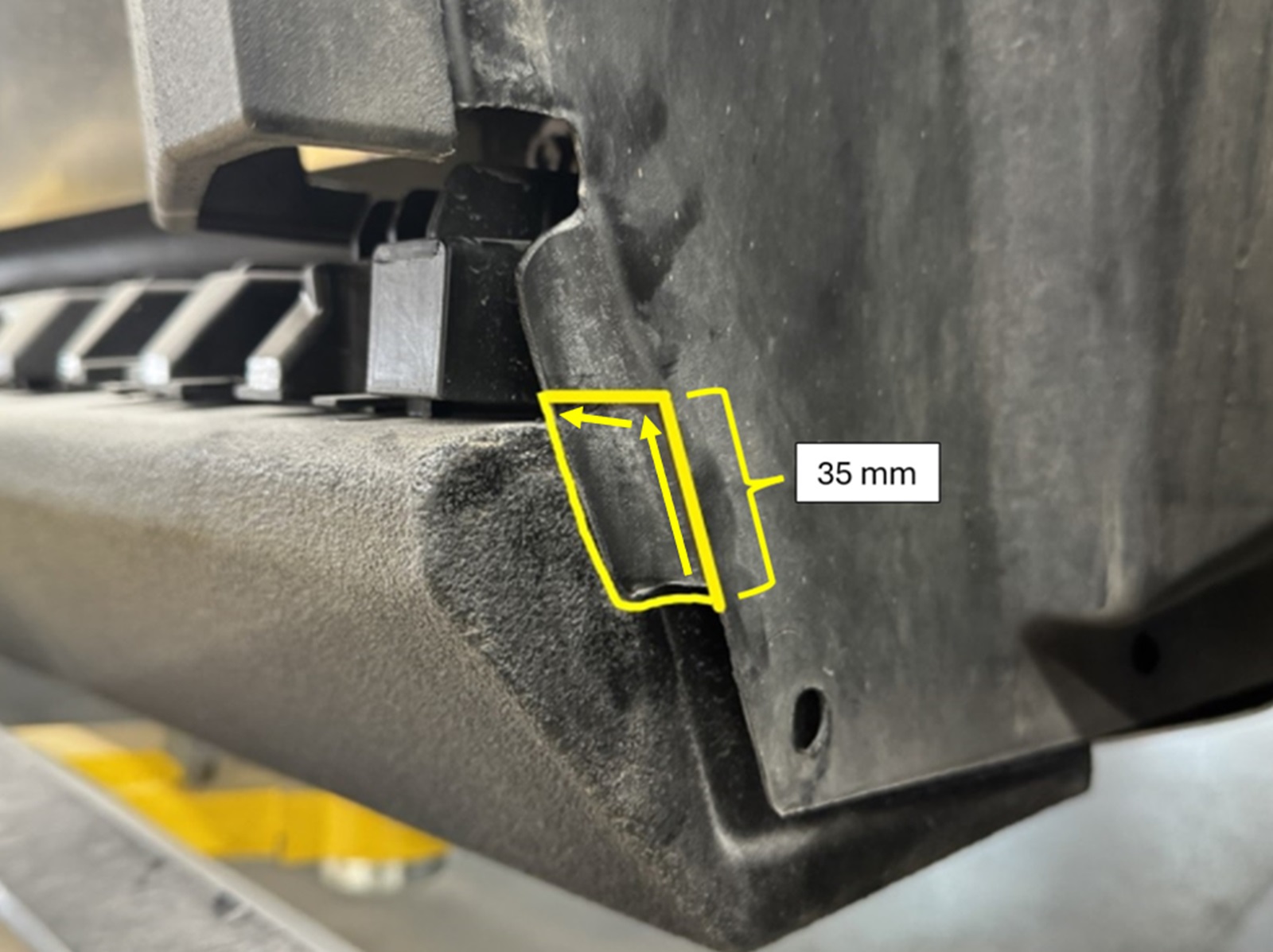 ATTENTIONIt is necessary to remove a 35 mm piece of the rear wheel liner to allow enough room to properly install the LH off road rocker carrier.