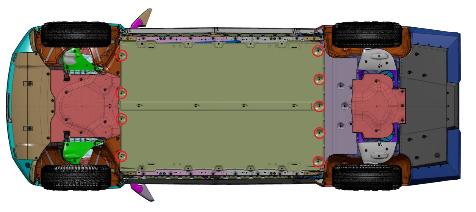 Figure 8. Total number of HV battery front and rear fasteners shown for clarity -