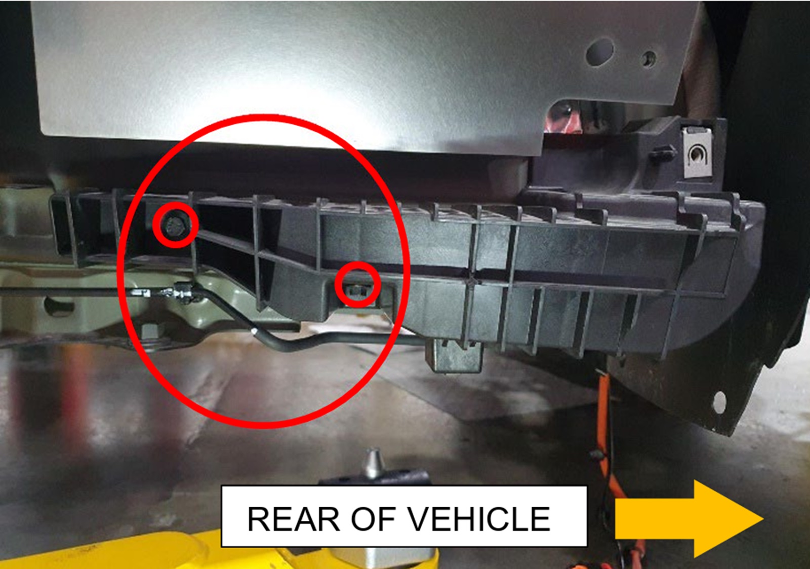 Replace the HV battery rear skid plate with an updated part (part number 1854631-00-B or later). See Skid Plate - Rear (Remove and Install).