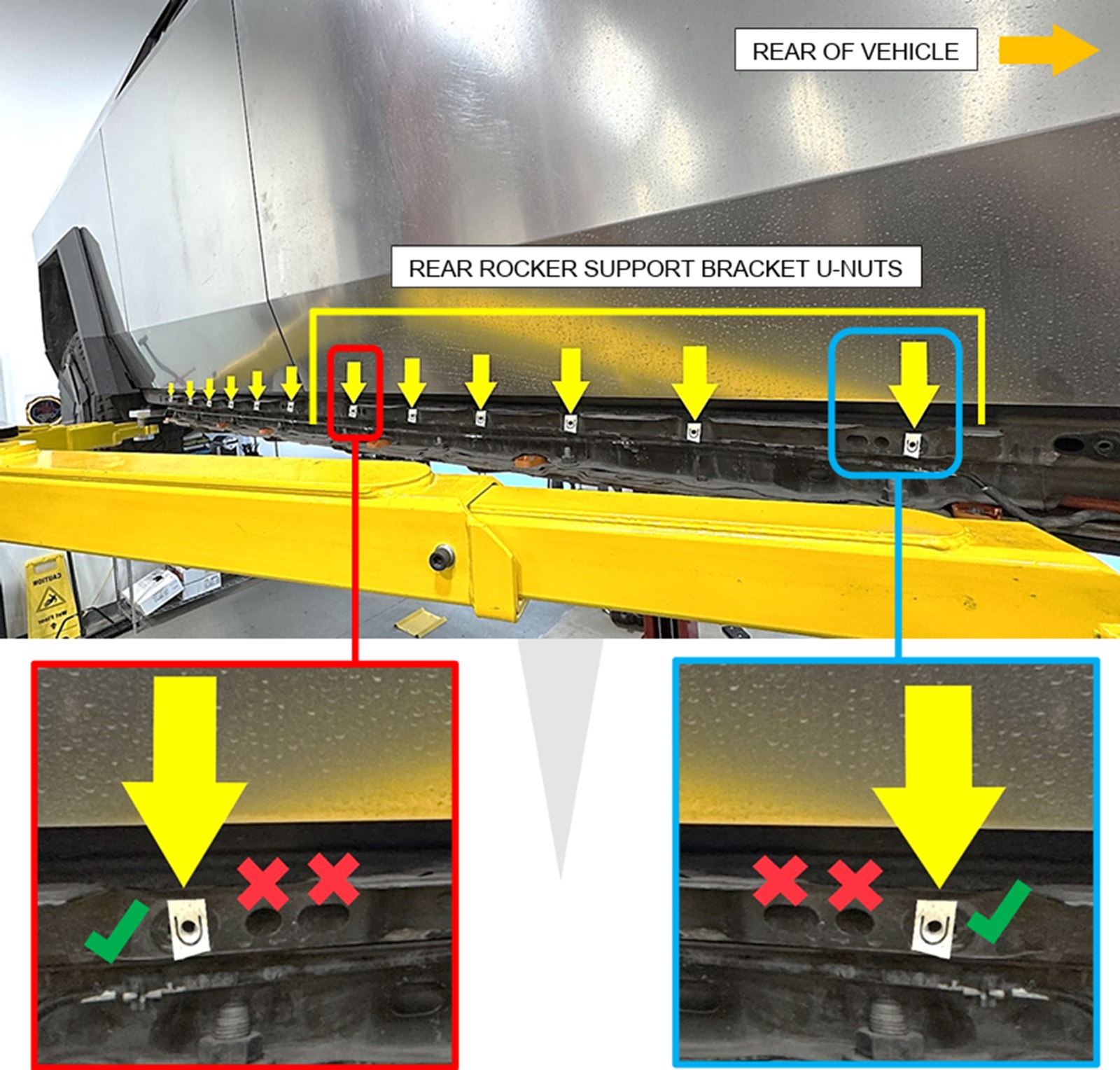 Repeat steps 11 and 12 for the RH front and rear rocker support bracket U-nuts (x12).