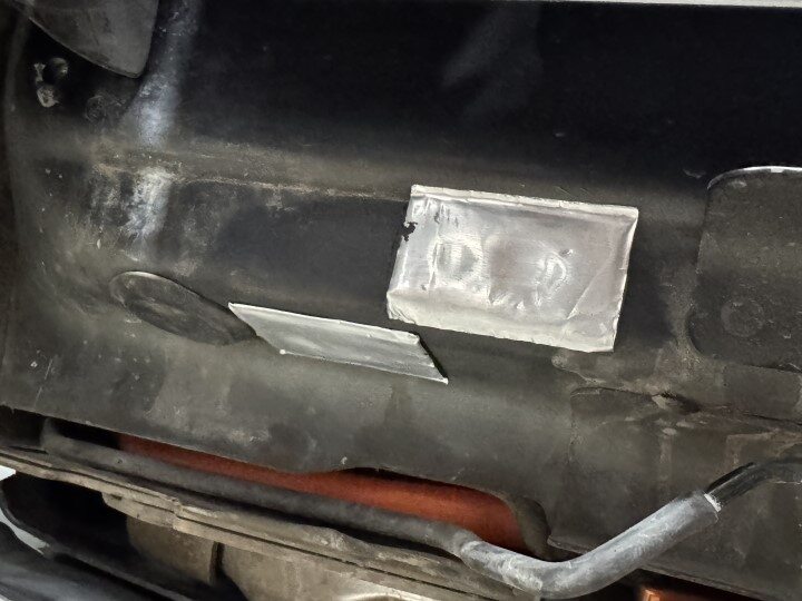 If not already performed, install butyl patches on the LH front and rear vehicle body side exposed holes.