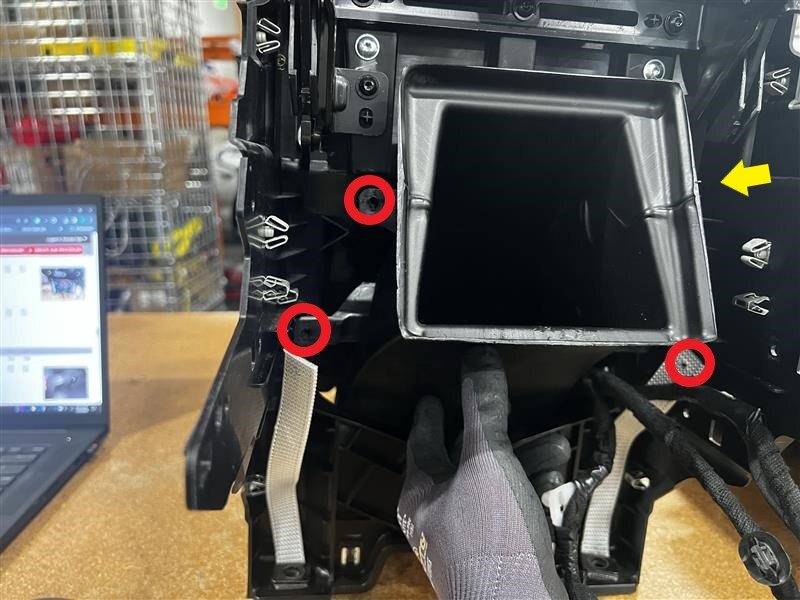 Retirez les boulons (x4) qui fixent le conduit de la console centrale à l'ensemble de console centrale, puis retirez le conduit de l'ensemble.