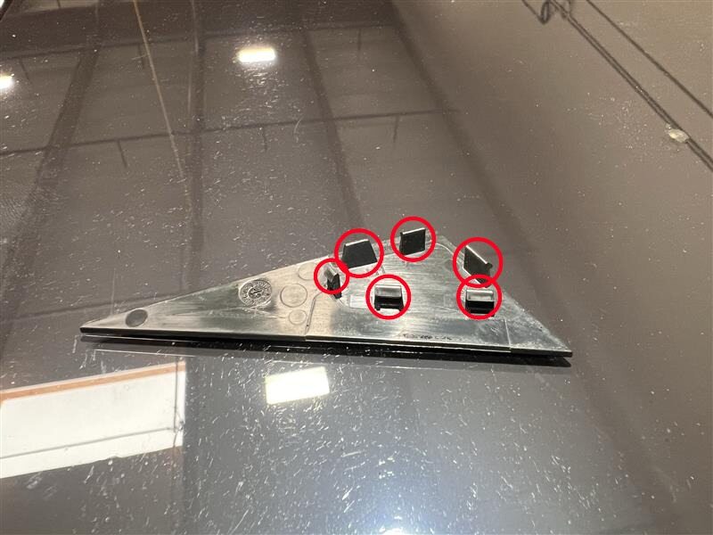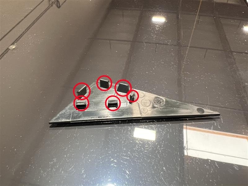 Install the tabs (x4) that attach the front end of the RH roof applique to the vehicle.