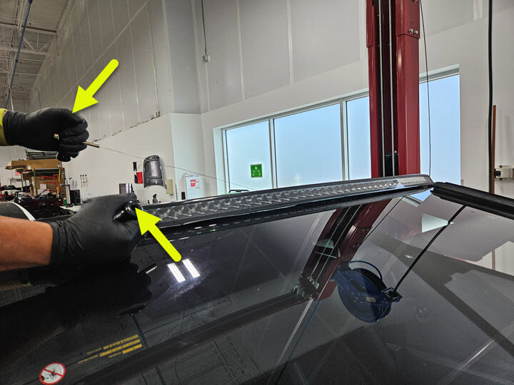 If present, carefully remove all urethane from the upper exterior portion of the windshield.