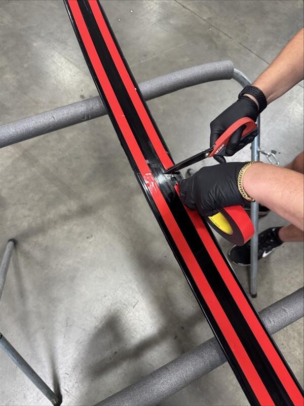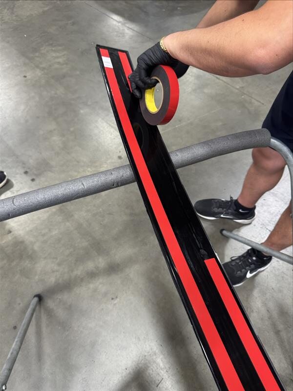 ATTENTIONThe blackout film tape must be installed on the lightbar prior to delivering the vehicle to the customer. Only the customer or a third-party entity is permitted to remove the blackout film tape.RemarquePosition the lightbar on a level surface while applying the tape. Make sure the tape fully covers the front side of the lightbar.