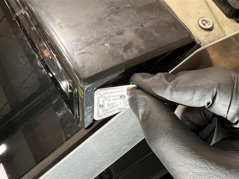 Install the tabs (x4) that attach the front end of the LH roof applique to the vehicle.