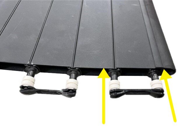 Remarque2x slat bolts, 2x sleeves, 4x rollers, 1x Y-React Clip, Insert slat bolts into slats until fully engaged