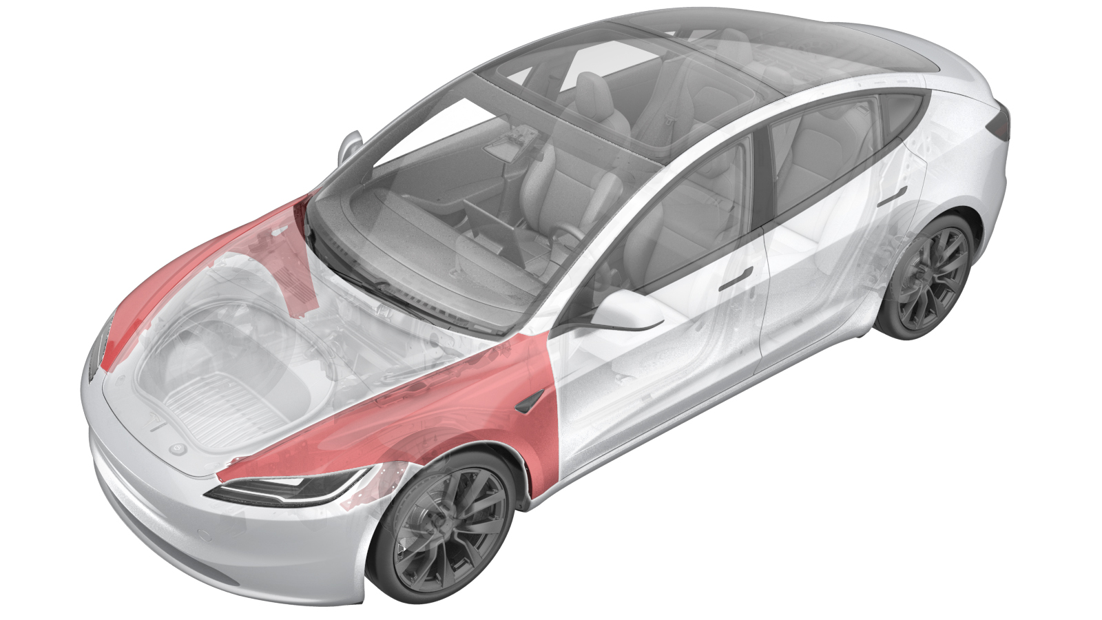 1010 - Body Panels Related links Brace - Shock Tower (Remove and Replace) Correction code 1010055312 FRT 0.60 NOTE: Unless otherwise explicitly stated in the procedure, the above correction code and FRT reflect all of the work required to perform this procedure, including the linked procedures. Do not stack correction codes unless explicitly told to do so. NOTE: See Flat Rate Times to learn more about FRTs and how they are created. To provide feedback on FRT values, email ServiceManualFeedback@tesla.com. NOTE: See Personal Protection to make sure wearing proper PPE when performing the below procedure.NOTE: See Ergonomic Precautionsfor safe and healthy working practices. Door - Front - LH (Remove and Install) Correction code 1010025021 FRT 0.42 NOTE: Unless otherwise explicitly stated in the procedure, the above correction code and FRT reflect all of the work required to perform this procedure, including the linked procedures. Do not stack correction codes unless explicitly told to do so. NOTE: See Flat Rate Times to learn more about FRTs and how they are created. To provide feedback on FRT values, email ServiceManualFeedback@tesla.com. NOTE: See Personal Protection to make sure wearing proper PPE when performing the below procedure.NOTE: See Ergonomic Precautionsfor safe and healthy working practices. Door - Front - LH (Remove and Replace) Correction code 1010025022 FRT 1.32 NOTE: Unless otherwise explicitly stated in the procedure, the above correction code and FRT reflect all of the work required to perform this procedure, including the linked procedures. Do not stack correction codes unless explicitly told to do so. NOTE: See Flat Rate Times to learn more about FRTs and how they are created. To provide feedback on FRT values, email ServiceManualFeedback@tesla.com. NOTE: See Personal Protection to make sure wearing proper PPE when performing the below procedure.NOTE: See Ergonomic Precautionsfor safe and healthy working practices. Door - Rear - LH (Remove and Install) Correction code 1010025041 FRT 0.24 NOTE: Unless otherwise explicitly stated in the procedure, the above correction code and FRT reflect all of the work required to perform this procedure, including the linked procedures. Do not stack correction codes unless explicitly told to do so. NOTE: See Flat Rate Times to learn more about FRTs and how they are created. To provide feedback on FRT values, email ServiceManualFeedback@tesla.com. NOTE: See Personal Protection to make sure wearing proper PPE when performing the below procedure.NOTE: See Ergonomic Precautionsfor safe and healthy working practices. Door - Rear - LH (Remove and Replace) Correction code 1010025042 FRT 1.08 NOTE: Unless otherwise explicitly stated in the procedure, the above correction code and FRT reflect all of the work required to perform this procedure, including the linked procedures. Do not stack correction codes unless explicitly told to do so. NOTE: See Flat Rate Times to learn more about FRTs and how they are created. To provide feedback on FRT values, email ServiceManualFeedback@tesla.com. NOTE: See Personal Protection to make sure wearing proper PPE when performing the below procedure.NOTE: See Ergonomic Precautionsfor safe and healthy working practices. Fender Assembly - Front - LH (Remove and Install) Correction code 1010025081 FRT 0.96 NOTE: Unless otherwise explicitly stated in the procedure, the above correction code and FRT reflect all of the work required to perform this procedure, including the linked procedures. Do not stack correction codes unless explicitly told to do so. NOTE: See Flat Rate Times to learn more about FRTs and how they are created. To provide feedback on FRT values, email ServiceManualFeedback@tesla.com. NOTE: See Personal Protection to make sure wearing proper PPE when performing the below procedure.NOTE: See Ergonomic Precautionsfor safe and healthy working practices. Fender Assembly - Front - LH (Remove and Replace) Correction code 1010025082 FRT 1.02 NOTE: Unless otherwise explicitly stated in the procedure, the above correction code and FRT reflect all of the work required to perform this procedure, including the linked procedures. Do not stack correction codes unless explicitly told to do so. NOTE: See Flat Rate Times to learn more about FRTs and how they are created. To provide feedback on FRT values, email ServiceManualFeedback@tesla.com. NOTE: See Personal Protection to make sure wearing proper PPE when performing the below procedure.NOTE: See Ergonomic Precautionsfor safe and healthy working practices. Hood Assembly (Remove and Replace) Correction code 10100302 FRT 0.42 NOTE: Unless otherwise explicitly stated in the procedure, the above correction code and FRT reflect all of the work required to perform this procedure, including the linked procedures. Do not stack correction codes unless explicitly told to do so. NOTE: See Flat Rate Times to learn more about FRTs and how they are created. To provide feedback on FRT values, email ServiceManualFeedback@tesla.com. NOTE: See Personal Protection to make sure wearing proper PPE when performing the below procedure.NOTE: See Ergonomic Precautionsfor safe and healthy working practices. Trunk (Remove and Install) Correction code 1010025011 FRT 0.48 NOTE: Unless otherwise explicitly stated in the procedure, the above correction code and FRT reflect all of the work required to perform this procedure, including the linked procedures. Do not stack correction codes unless explicitly told to do so. NOTE: See Flat Rate Times to learn more about FRTs and how they are created. To provide feedback on FRT values, email ServiceManualFeedback@tesla.com. NOTE: See Personal Protection to make sure wearing proper PPE when performing the below procedure.NOTE: See Ergonomic Precautionsfor safe and healthy working practices. Trunk (Remove and Replace) Correction code 1010025012 FRT 0.84 NOTE: Unless otherwise explicitly stated in the procedure, the above correction code and FRT reflect all