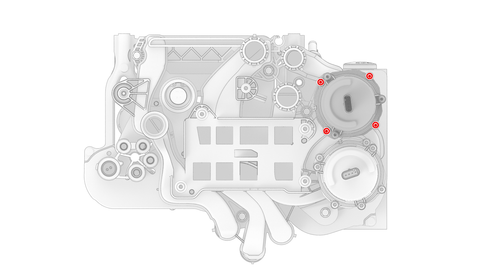 Bolts (x4) that attach the powertrain coolant pump to the Supermanifold |