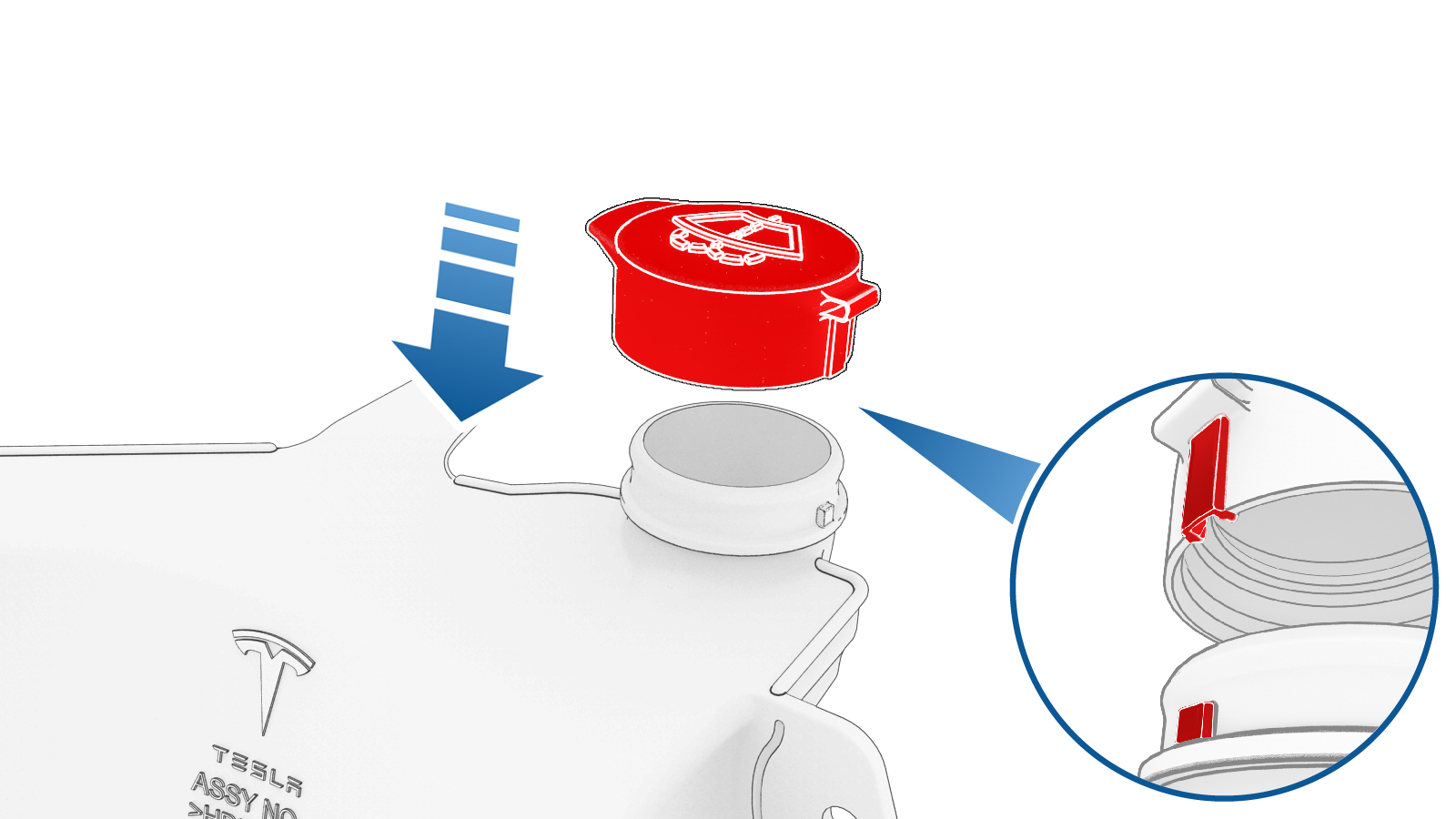 the cap with the locating tab on the reservoir, and then fully seat the cap