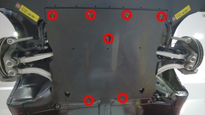 Bolts (x7) that attach the front aero shield panel to the vehicle |