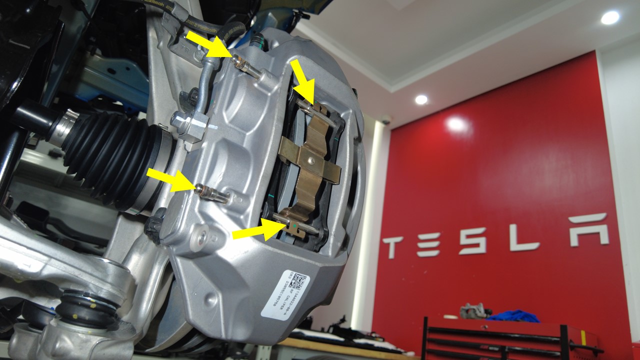 - Apply an even layer of Silaramic lubricant to the LH front brake caliper retaining pins.