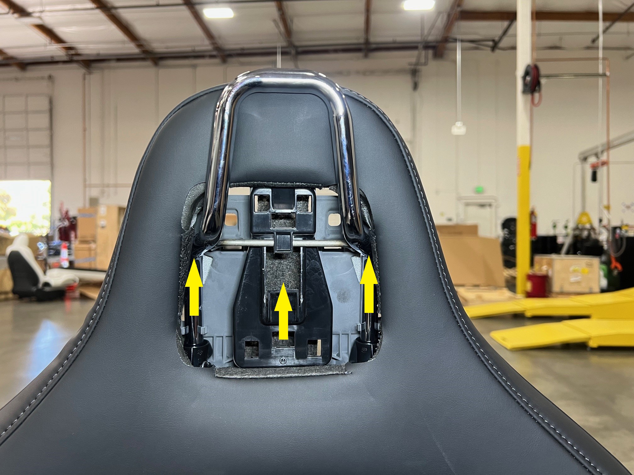 NoteInstall the lower clips first and rotate the shell up into place, light pressure may need to be applied to the shell to ensure it's fully seated, the headrest posts will engage the seat back when installed.